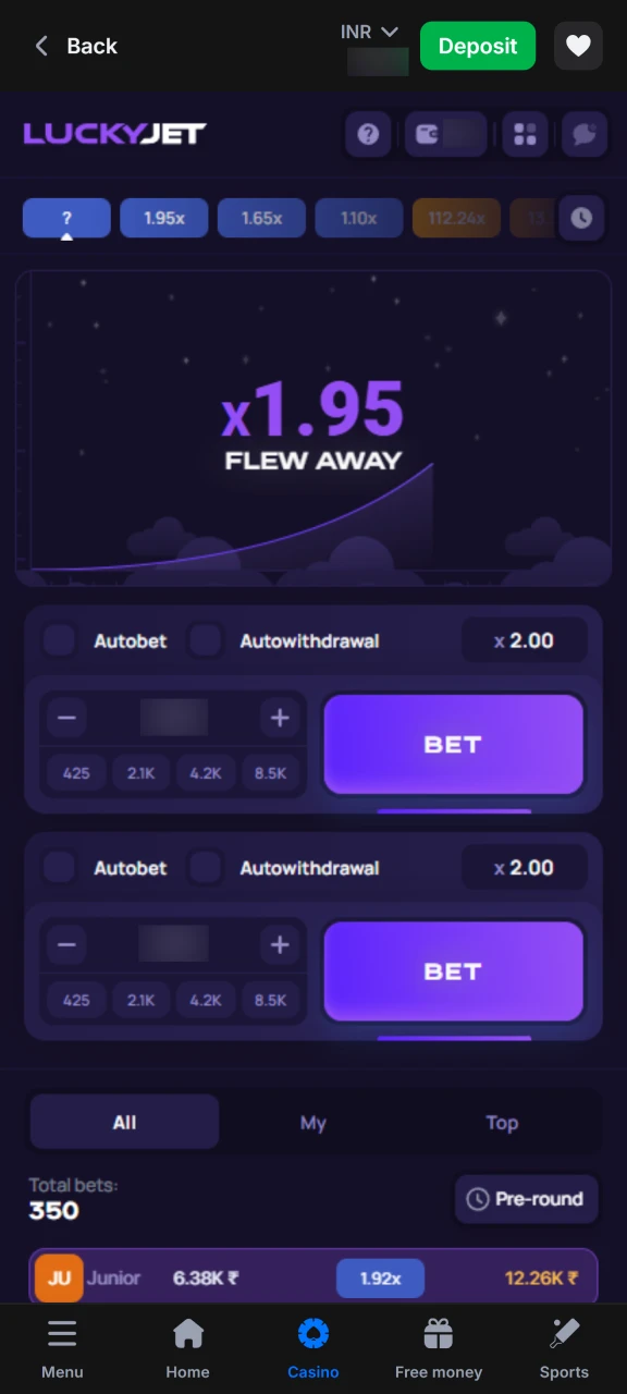 The 1Win Lucky Jet app gives Indian players mobile access to the crash game under an international Curacao license. The app supports INR payments, popular UPI wallets, and cryptocurrencies, with fast deposits and withdrawals. New users receive a welcome bonus after registration and their first deposit. The 1win Lucky Jet download option works on Android and iOS devices and opens full game features directly on a smartphone.