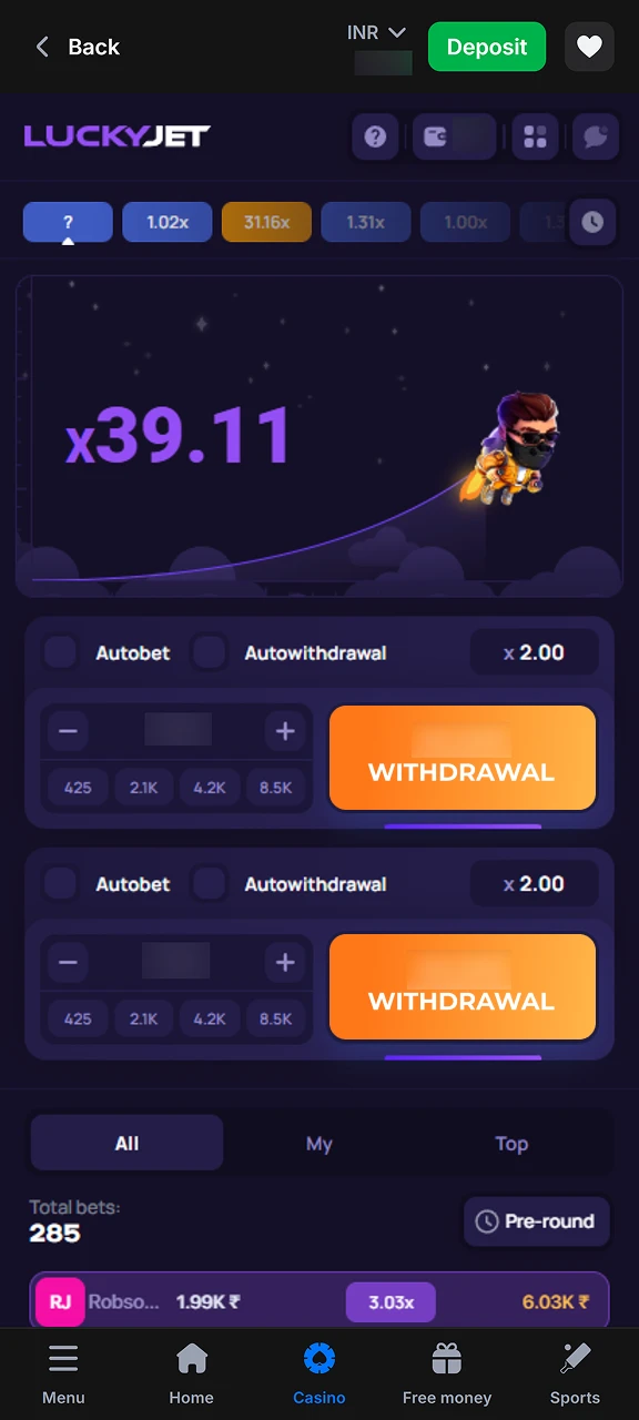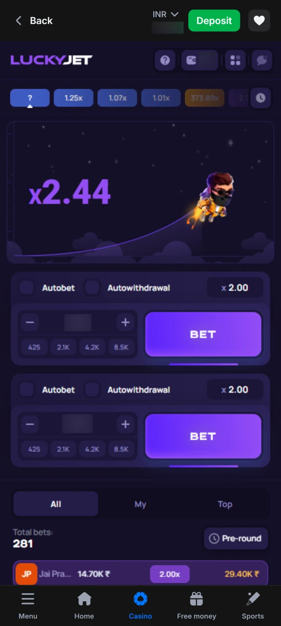 The mobile app focuses on quick access to Lucky Jet rounds, precise bet control, and real-time data. Built-in tools help players react faster, manage balance, and adjust strategies directly from a smartphone screen.