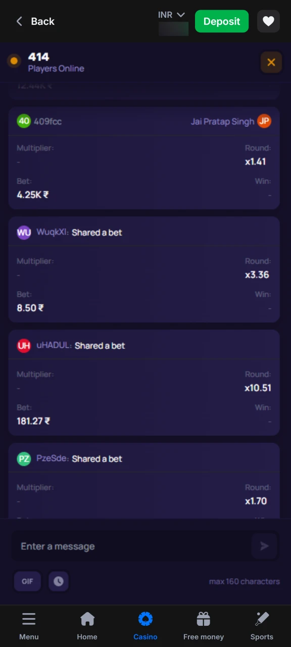 Past rounds and multipliers appear in a horizontal strip, which helps you observe trends before the next bet. Cash out buttons are big and easy to tap, which is vital in a high-speed crash game.